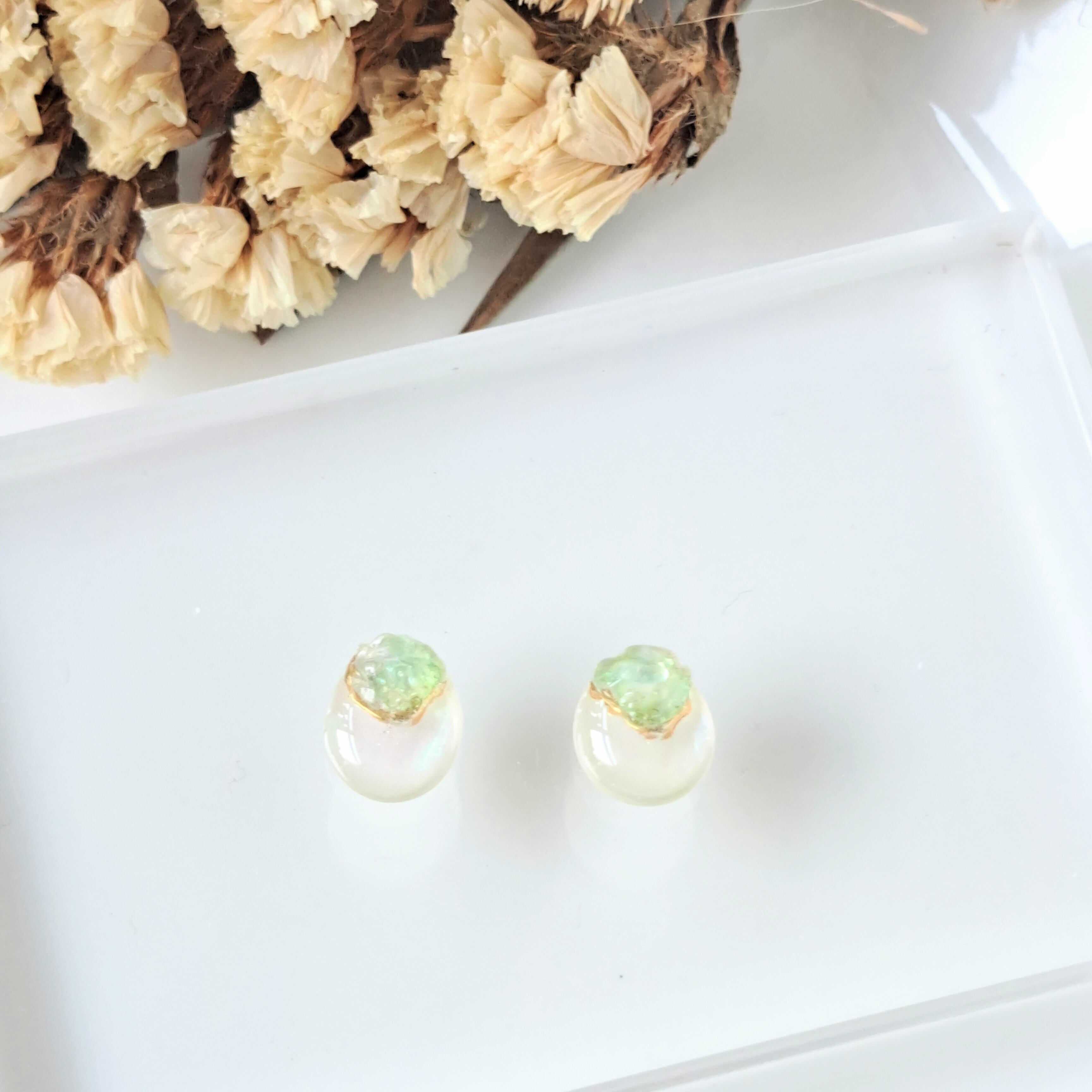 イヤリングは樹脂のノンホールピアスでのお作りと